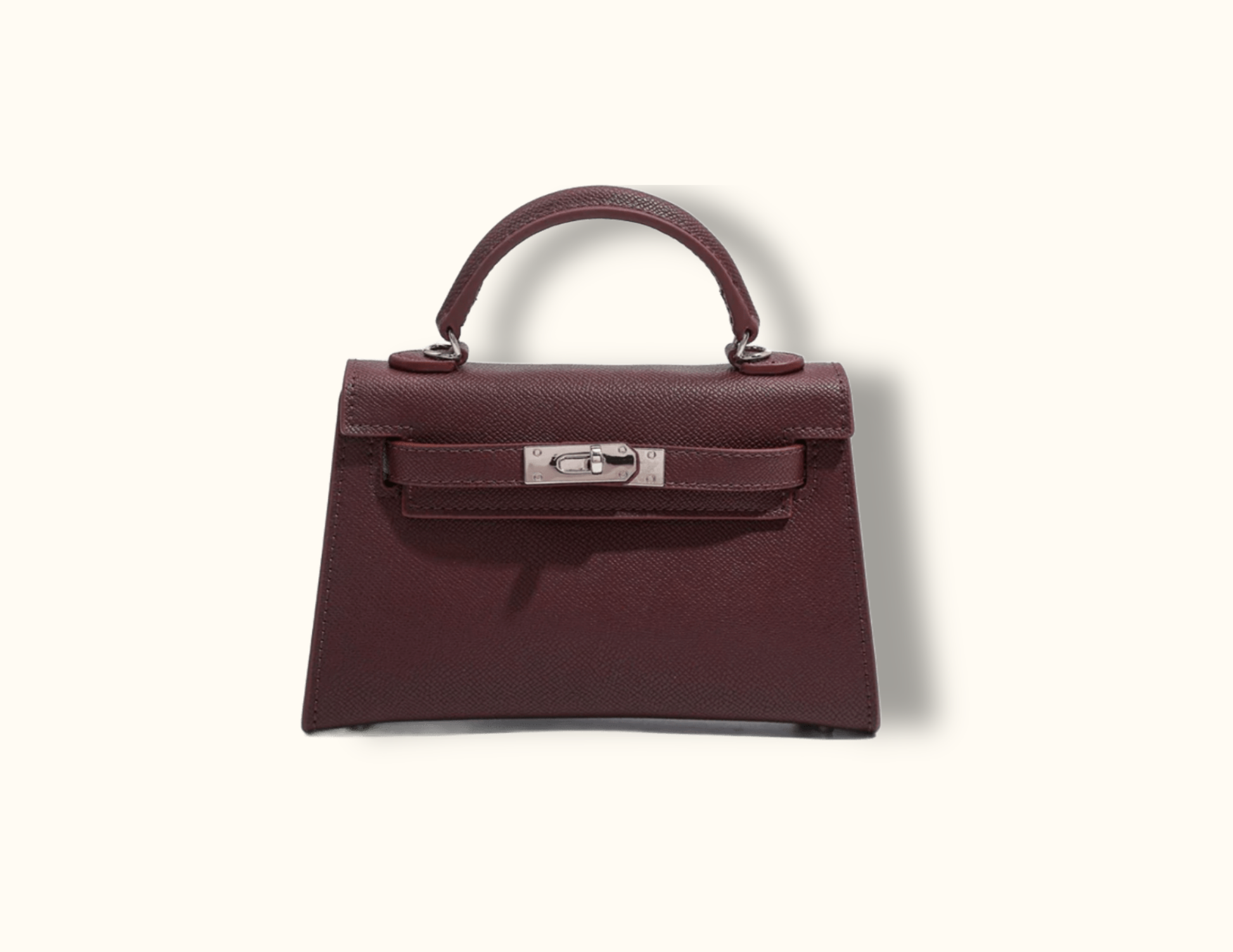 Sac en cuir polyurhétane bordeaux et détails argent.
